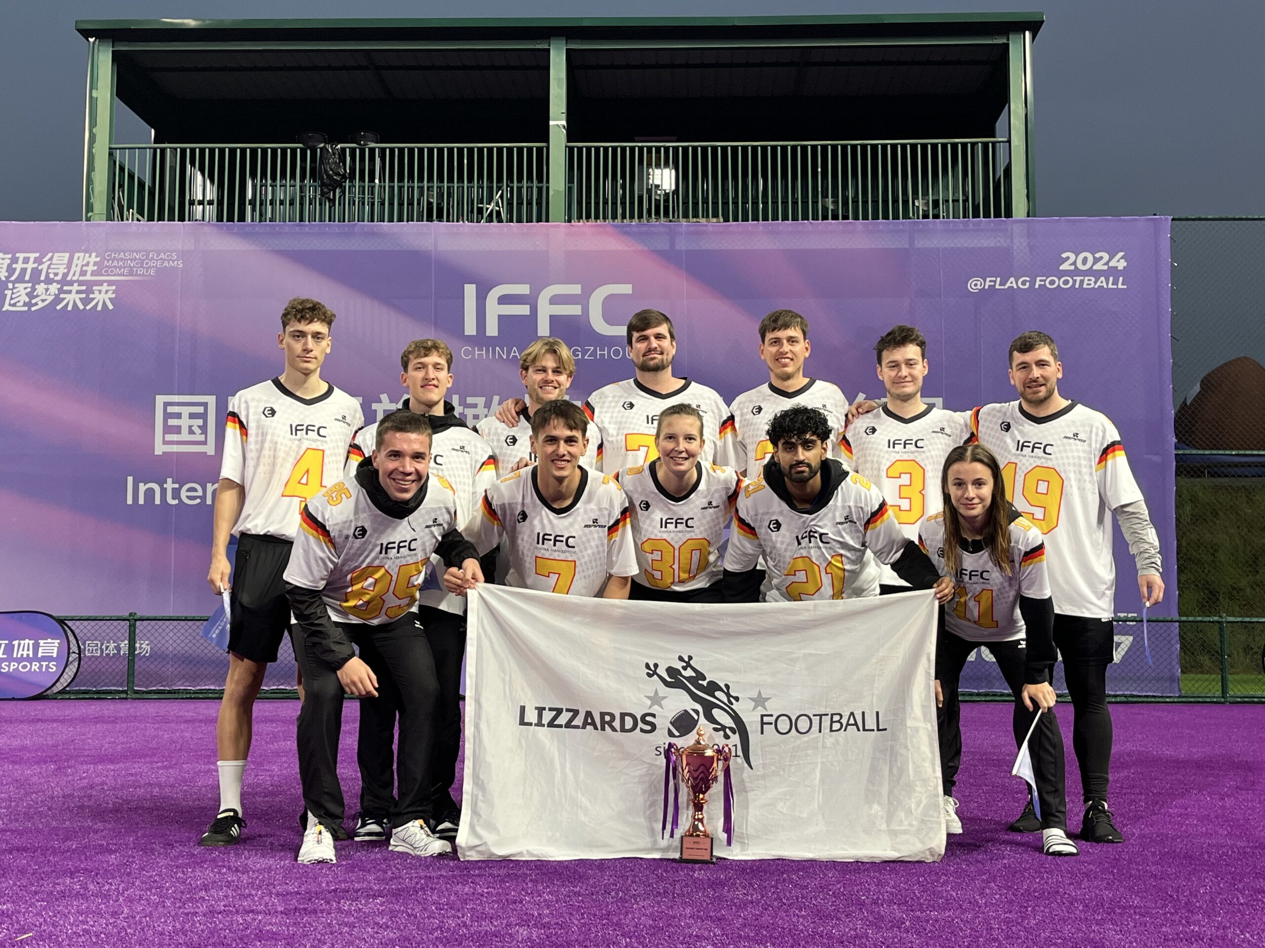 Ein aus Damen- und Herrenmannschaft zusammengestelltes Flag Football Team der Kelkheim Lizzards reiste für das Wochenende vom 26/27.10 nach Hangzhou, China, um sich dort im Rahmen der International Flag Football Championship mit Mixed-Teams aus Asien und den USA zu messen.