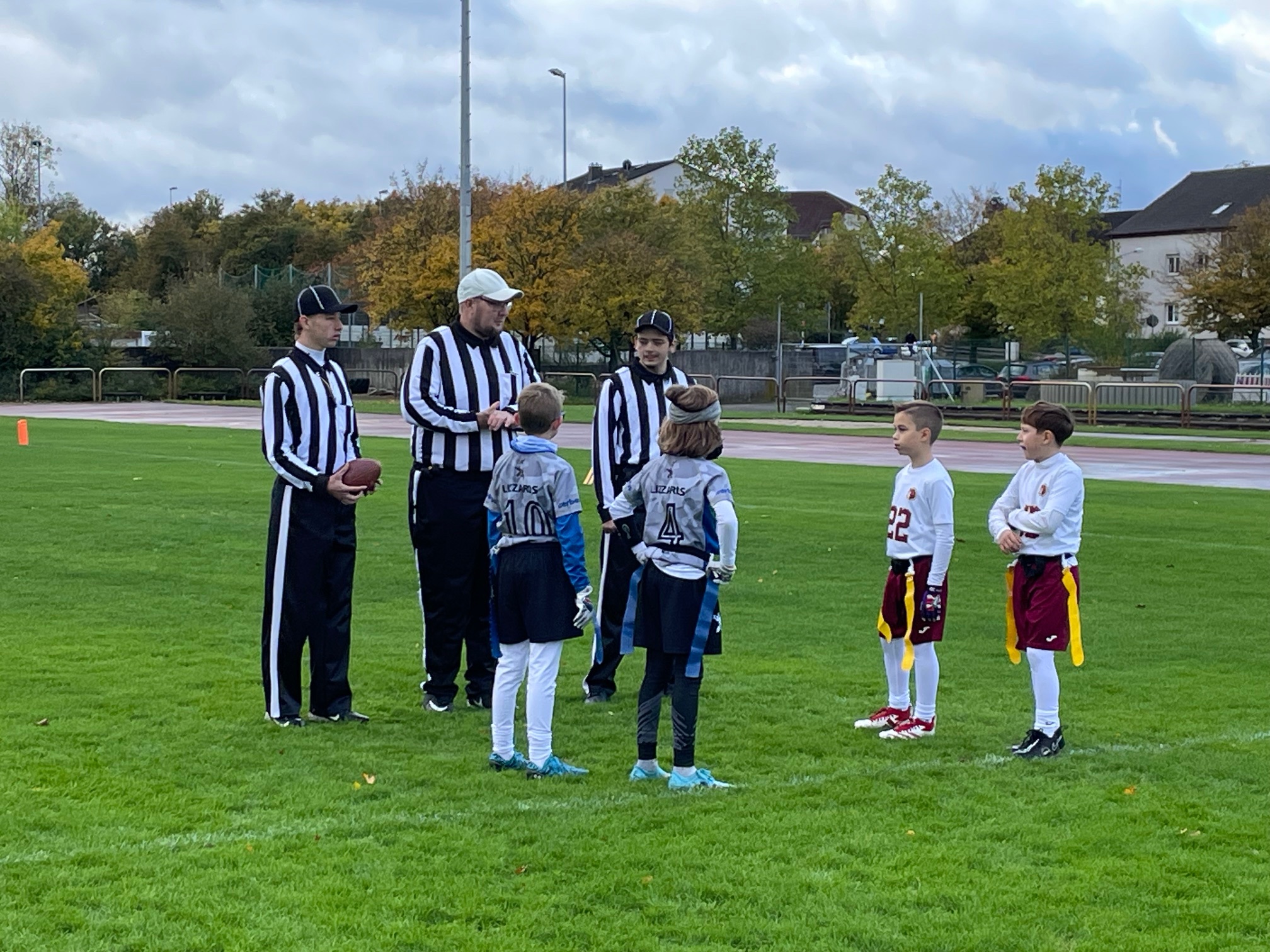 Ein echter Dämpfer für das Kelkheimer Spiel, allerdings zeigten sich die U10er unbeeindruckt und scorten direkt nach der Pause zum Anschluss. Beim Stand von 24:26 schaffte die Defense ihr erstes Big Play. Sie hielt bei nur noch wenigen Minuten auf der Uhr dem Angriff der Bürstädter stand und brachte so unsere eigene Offense in die Situation, das Spiel zugunsten von Kelkheim zu lenken. Diese konnte in dem folgenden Drive zwar einen neuen Versuch erreichen, aber keine Zähler aufs Board bringen. Bürstadt erhielt somit das Angriffsrecht zurück. Abermals konnte die Defense den Gegner stoppen – Kelkheim verbrauchte dabei alle Timeouts, um die Uhr anzuhalten. Bei unter einer Minute sollten die Lizzards dadurch noch ein allerletztes Mal den Ball bekommen. Die U10 beeilte sich, aber nun kam Hektik auf. Erster Versuch: Catch, zweiter Versuch: Catch, dritter Versuch: Catch – aber dann der unerbittliche Pfiff des Referee-Gespanns: Spielzeit abgelaufen… Die Offense hatte es in den verbleibenden Sekunden nicht mehr schaffen können, in die gegnerische Endzone vorzudringen.